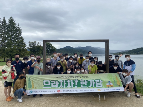 성남시한가람보호작업장(원장 양병춘)은 8월 30(화)부터 8월 31일(수)까지 1박2일간 ‘2022년 으라차차! 한가람!’ 캠프 프로그램을 진행하였다. 이번 행사에는 총 37명(근로 장애인 27명, 종사자 10명)이 참여하였다.코로나19 사회적 거리두기 단계완화 후 한가람에서 진행하는 첫 1박2일 프로그램이었다. 장소는 경기도 양평으로 선정하였고, 근로장애인들이 가장 좋아하는 물놀이, 레크리에이션을 즐길 수 있는 숙소와 다양한 체험활동을 진행하였다.