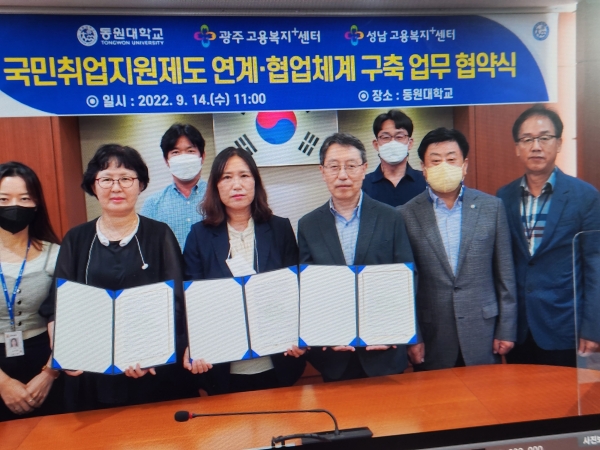 한편, 동원대학교 산학취업처(처장 임성준)는 동 협약 체결을 통해 “동원대학교와 성남고용센터, 경기광주고용센터 간 협업을 통해 재학생 및 졸업생이 더 나은 일자리에 취업될 수 있기를 희망한다.”고 말했다. 고용노동부 성남지청(지청장 김영미)은 “국민취업지원제도를 통해 동원대학교 재학생 및 졸업생들에게 맞춤형 취업지원서비스를 제공하여 더 좋은 일자리를 찾을 수 있도록 적극적으로 지원하겠다.”고 밝혔다.