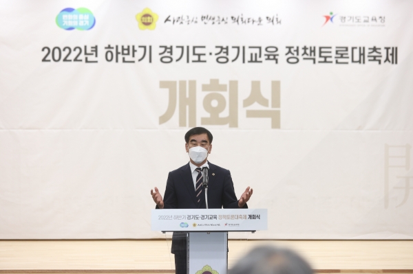 남종섭 경기도의회 더불어민주당 대표의원, 곽미숙 경기도의회 국민의힘 대표의원이 축사를 맡아 경기도-경기교육 정책토론대축제 개회식을 빛냈다.염종현 경기도의회 의장은 개회사를 통해 “경기도-경기교육 정책토론대축제는 11대 의회가 개회되면서 새롭게 시작되는 행사라서 의미가 남다르다며, 결과가 고스란히 도민의 민생에 담겨지길 바란다.”고 말했다.
