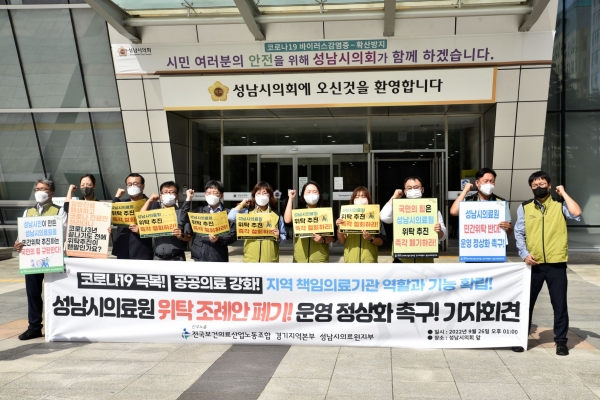성남시의료원 노조는 성남시의회 정문 앞에서 기자회견을 갖고 국민의 힘 정용한 대표의원 등이 성남시의료원을 민간법인에 위탁하도록 하는 조례를 발의하였다. 이들 국민의 힘 의원들이 발의한 「성남시의료원 설립 및 운영에 관한 조례 일부개정조례안」은 제7조 제1항 중“운영의 전부 또는 일부를 대학병원 등에 위탁할 수 있다”를 “운영을 다음 각 호의 어느 하나에 해당하는 법인에게 위탁하여야 한다.”는 내용을 담고 있다.