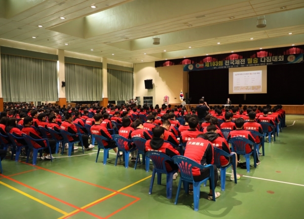 경기도교육청(교육감 임태희)은 대한체육회 주최‘제103회 전국체육대회’에 도내 학생 선수 644명이 참가한다고 30일 밝혔다.오는 10월 7일부터 13일까지 울산광역시 일원에서 열리는 이번 전국체육대회에는 경기도 대표선발전을 거친 143개 교의 남녀 학생 선수(남 400명, 여 244명)가 19세 이하부 45개 종목에 각각 출전한다.