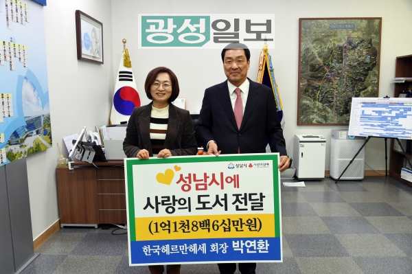 성남시는 이날 오전 10시 30분 시장 집무실에서 은수미 성남시장, 박연환 ㈜도서출판 한국헤르만헤세 회장, 배정옥 사장 등이 참석한 가운데 ‘사랑의 도서 전달식’을 했다.
