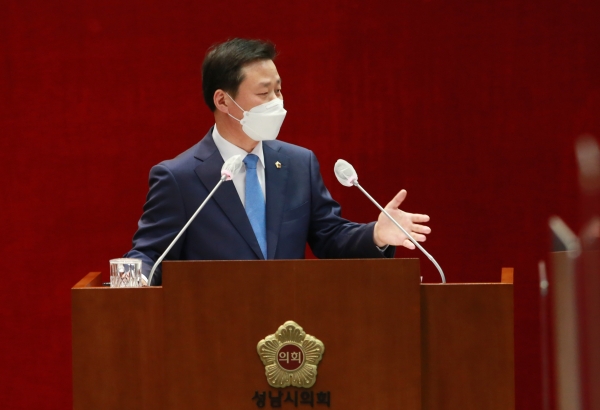 성남시의회 더불어민주당 이준배 의원(이매동, 삼평동)이 제275회 성남시의회 제2차 본회의에서 시정질문을 하고 있다.지난 12일 성남시의회 더불어민주당 이준배 의원(이매동, 삼평동)은 제275회 성남시의회 제2차 본회의에서 시정질의에 나섰다.이준배 의원은 “전국 최초 주민발의로 건립된 성남시의료원에 대해, 새로 취임한 신상진 성남시장이 시민 의견의 충분한 수렴 없이 민간 위탁 운영을 피력한 것에 대해 강력히 반대 한다”라고 밝히며 질의에 나섰다.