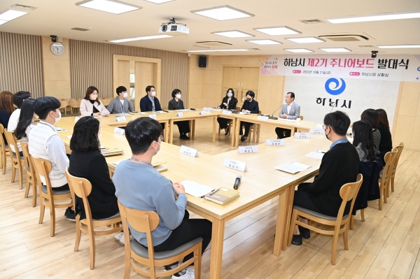 하남시 제2기 주니어보드는 21일 하남시청 본관 2층 상황실에서 발대식을 개최하고 본격적인 활동에 돌입했다고 밝혔다.주니어보드는 젊은 실무자들로 구성된 실무진 회의로, 건의사항이나 보완사항 등을 제안·토의하는 제도다. 이번에 출범한 제2기 주니어보드는 공직 근무경력 7년 이내의 MZ세대 주니어 직원 21명으로 구성, 이달부터 내년 3월까지 6개월간 2개 분과(일하는 방식 개선, 조직문화 혁신) 총 4개팀으로 나눠 활동하게 된다.