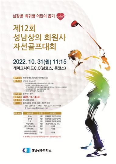 코로나19로 인하여 2년만에 열리는 자선골프대회는 2011년부터 주최해온 정기 행사로서 해를 거듭할수록 기업인들의 관심과 참여가 더욱 확대되고 있으며, 지난해까지 총 4억 8천만원의 성금을 조성하여 지역의 가장 큰 기부문화 행사로 자리 잡고 있다.성남상공회의소 회원사 자선골프대회 관련 자세한 문의사항은 성남상공회의소 회원사업부(031-781-7902)로 하면 된다.
