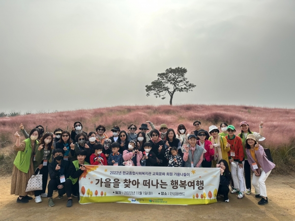 이날 회원들은 코스모스와 핑크뮬리의 분홍색이 가득한 가을 풍경을 감상하며 기념사진을 찍고 산책로를 걸으며 즐거운 시간을 보냈다.나들이에 참여한 어르신은 “코로나19로 인해 3년 동안 나들이를 가지 못했는데, 이번 기회를 통해 푸른하늘과 분홍의 코스모스 그리고 핑크뮬리가 어우러진 모습을 두 눈에 담았고 소중한 추억을 남기고 간다.”며 감사함을 전했다.