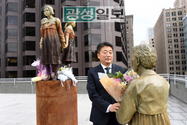 북미 지역을 순방중인 성남시의회 박문석 의장은 현지시각 11일 샌프란시스코 세인트마리 광장에 설치된 위안부 기림비를 찾아 참배 및 헌화하는 시간을 가졌다.
