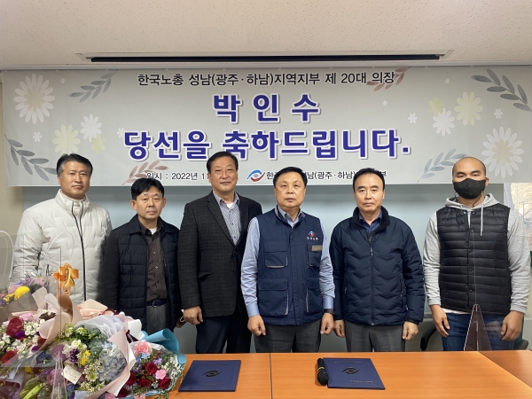 또한 12월 말일로 임기를 마무리 하는 박인수 의장은 성남.광주.하남지역 4만여 조합원들을 위하고 지역경제 발전을 위해 오랜 세월 사무처장으로 활동하면서 실무적 감각을 통해 지난해 전왕표 전임 의장의 정년사퇴로 보궐선거를 통한 1년 6월개월 의장으로 재임하면서 2천여 조합원의 조직확대와 성남, 하남시 이동노동자 쉼터 위탁운영과 노동안전지킴이 사업등을 성공적으로 이끌어 왔다.