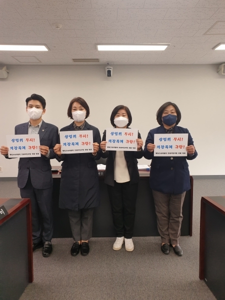[광성일보] 박경희 성남시의회 행정교육위원장 및 김선임․성해련․김윤환 행정교육위원회 소속 위원(이하 더불어민주당 소속 행교위 위원)들은 22일(화) 상임위 운영을 무시하고 협의 없이 일방적으로 조례안 심사기한을 정하여 통보한 박광순 의장을 강력히 규탄했다.박광순 성남시의회 의장은 “조례안 등 일반의안을 2022.11.22.(화) 24:00까지 심사 완료 후 제2차 본회의에 보고”하라는 공문을 발송하였다.