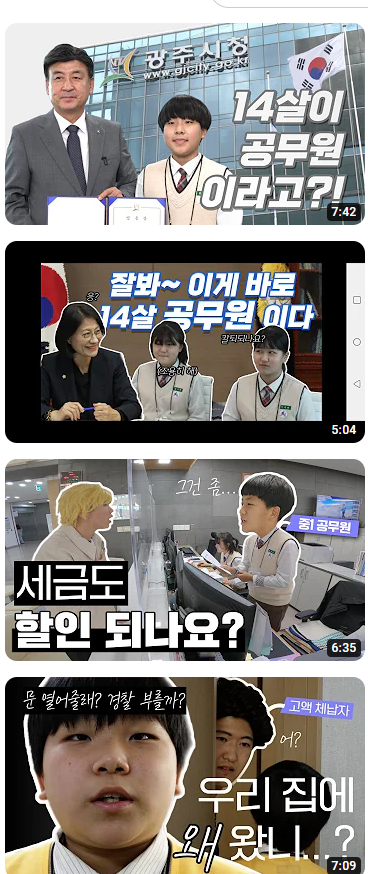 시나리오 및 시민 역할은 그동안 경험했던 사례를 바탕으로 광주시 공무원들이 직접 연출했다.영상을 본 시민들은 14살 공무원들의 순수하고 열정적인 민원 응대가 웬만한 예능보다 재밌고 참신하다는 반응을 보이고 있다.방세환 시장은 “앞으로도 시민과 함께하는 시민이 공감하는 참신하고 창의적인 행정 홍보를 추진해 나가겠다”고 말했다.