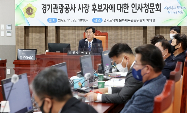 [광성일보] 경기도의회 문화체육관광위원회(위원장 이영봉)가 28일 조원용 경기관광공사 사장 후보자에 대한 인사청문회를 실시, 양당 합의 끝에 결과보고서가 가결됐다.이번 인사청문회는 지난 11월 21일 경기도·경기도의회가 체결한 ‘산하기관장 인사청문 업무협약’에 따라, 17일 도가 인사청문을 요청한 6개 산하기관장 중 문화체육관광위원회 소관인 경기관광공사 사장 후보자에 대한 정책역량 검증이 실시된 것이다.