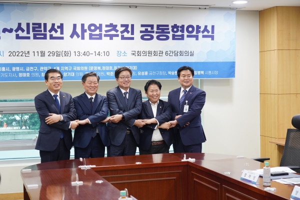 [광성일보] 더불어민주당 문정복 국회의원(경시시흥갑)이 주관하는 신천~신림선 공동협약식은 김동연 경기도지사, 박준희 관악구청장, 유성훈 금천구청장, 박승원 광명시장, 임병택 시흥시장, 정태호 국회의원, 최기상 국회의원, 양기대 국회의원이 참석할 예정이다.시흥·광명공공택지지구 고시확정과 함께 광역교통의 필요성과 시흥시민들의 교통편의를 위한 시급한 과제 중 가장 시급한 문제인 철도는 지금까지 뜨거운 현안이다.