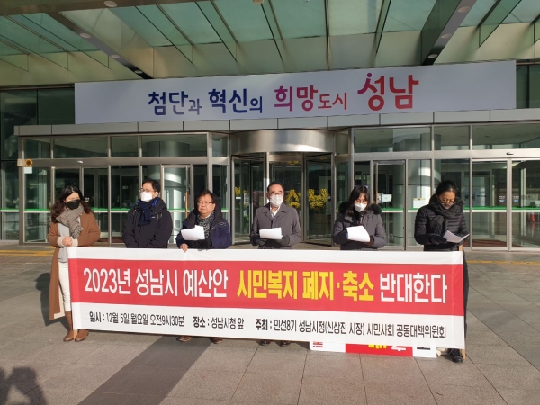 민선8기 성남시가 시의회에 제출한 2023년 예산안에 대해 예산안, 시민복지 폐지·축소 반대