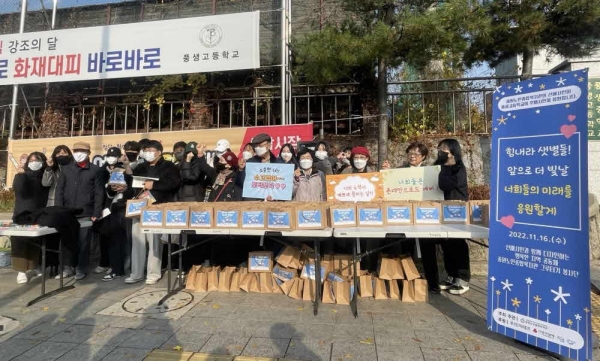 [광성일보] 중원노인종합복지관(관장 신명희) 청소년 전문 봉사단 그루터기는 2023학년도 대학수학능력시험(이하 수능)을 맞이하여 11월 16일(수) 수험생 응원 캠페인 ‘힘내라 샛별들!’을 진행하였다.이번 캠페인은 수능을 앞둔 풍생고등학교 3학년 학생 및 재수생 280여 명을 대상으로, 봉사단 참여 어르신들이 직접 격려와 응원의 메시지를 손글씨로 작성한 엽서와 도서, 수능에 필요한 물품 등과 함께 따뜻한 응원의 마음을 전달하였다.