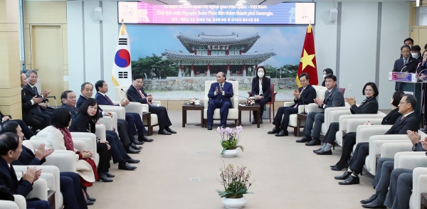 [광성일보] 광주시가 응우옌 쑤언 푹 베트남 국가주석 방문을 기념해 매년 12월 6일을 ‘베트남의 날’로 선포했다.이날 광주시를 찾은 푹 주석은 광주시 역동 다문화가정을 방문한 후 광주시청으로 이동해 김동연 경기지사와 방세환 시장, 오영주 주베트남한국대사 등 주요 인사와 접견하고 방 시장과 환담했다.이 자리에서 방 시장은 광주시를 소개하고 경제 분야 전반에 대한 폭넓은 교류를 요청하며 교류의향서를 전달했다.