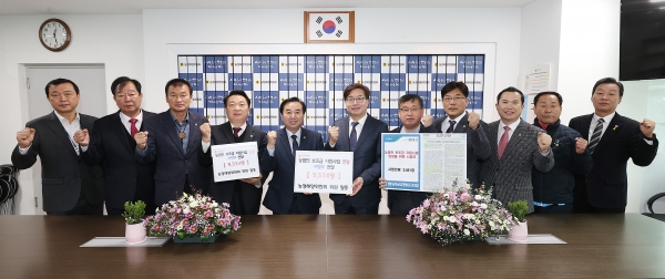 경기도의회 농정해양위원회(위원장 김성남)는 12일 농업인 보조금 지원사업 연장 촉구를 위한 농업인 서명부를 염태영 경기도 경제부지사에게 전달했다.
