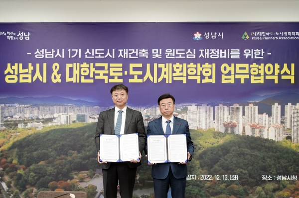 성남시는 1기 신도시 재건축과 원도심 재정비에 전문성을 더하기 위해 대한국토·도시계획학회와 협력체계를 구축했다.