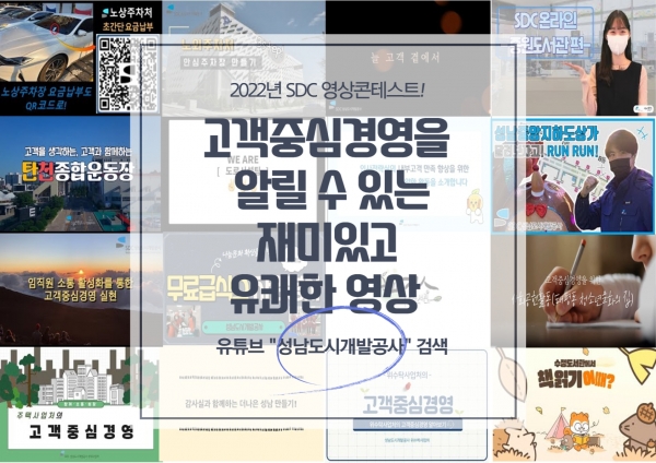 [광성일보] 성남도시개발공사(이하 공사, 사장 정건기)는 고객중심경영 추구를 위한 ‘2022년 고객중심경영 우수사례 영상콘테스트’ 수상작을 선정했다고 14일 밝혔다.이번 공모전은 ‘고객중심경영을 알릴 수 있는 재미있고 유쾌한 영상’이라는 주제로 사내 직원들이 영상콘텐츠를 출품하는 방식으로 진행했다.