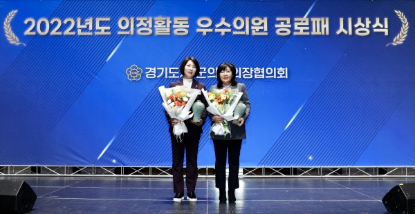 경기도 시·군의회 의장협의회 의정활동 우수의원 시상식에서,황소제 행정복지위원회 위원장과 이은채 의원이 수상하였다고 밝혔다.