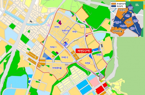 또한, ▲마천 5구역은 2021년 12월 신속통합기획 재개발 후보지로 선정되어 정비계획을 수립 중이며, ▲거여새마을구역은 2022년 12월에 재정비촉진구역 지정을 위한 도시재정비위원회 정비계획 심의를 통과해 사업 추진을 진행중이다.아울러, 거마지구 내 2-1, 2구역은 주택재개발사업이 2021년 준공되었고, 또한 마천 1, 3, 4 구역도 재개발 사업이 진행 중에 있다.이번 마천2구역 재개발 후보지 선정으로 2005년 거여마천뉴타운 지구 지정 이래 모든 지역이 재개발 사업을 추진하게 되면서 주민들의 기대감도 커지고 있다.구는 현재 거여마천지역이 신도시 조성 수준의 대규모 개발사업이 구역별로 시행됨에 따라, 인접지역과 연계된 편리한 교통 환경 및 아름다운 도심자연 조성, 문화복지시설 구축 등 쾌적한 주거 조건을 두루 갖춘 주거 도시로 도약할 수 있도록 재개발 정비사업에 적극 행정 지원할 방침이다.