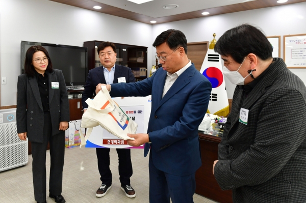 [광성일보] 성남시는 현대백화점 판교점이 모란전통기름시장 고객들에 나눠줄 장바구니 700개(600만원 상당)를 지원했다고 17일 밝혔다.시는 1월 16일 오후 시장 집무실에서 신상진 성남시장과 곽창환 현대백화점 판교점 부점장, 조광용 모란전통기름시장 상인회장, 김순한 소상공인시장진흥공단 성남센터장 등이 참석한 가운데 ‘백년기름특화거리 활성화를 위한 홍보 물품 전달식’을 했다.