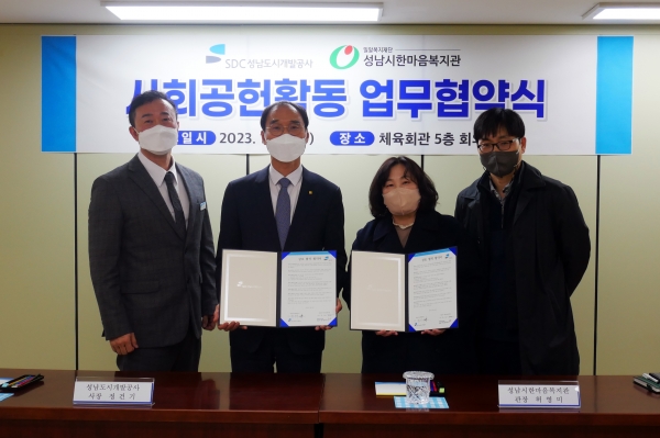 이번 협약은 다양한 봉사활동 추진으로 나눔 문화를 확산하고 지방공기업의 사회적 책임을 이행하고자 추진됐다.협약 주요 내용은 ▲상호 연계 서비스 지원 협력 ▲비장애인의 장애인식개선 증진을 위한 협력 사업 지원 ▲업무협의를 통해 추가 사회공헌활동 발굴 및 추진 등이다.한편 공사는 성남시한마음복지관과 연계해 전 직원이 참여하는 봉사활동 확대 추진, 지역 내 장애인 복지서비스 지원 등 지속적인 사회공헌활동으로 지역사회 발전에 기여할 계획이다.