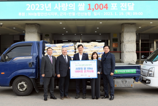 [광성일보] 안산시(시장 이민근)는 19일 NH농협 안산시지부(지부장 강정미)와 지역농협조합 군자농협(조합장 조인선), 반월농협(조합장 최기호), 안산농협(조합장 박경식)으로부터 사랑의 쌀 1천4포(포대당 10㎏)를 기탁 받았다.