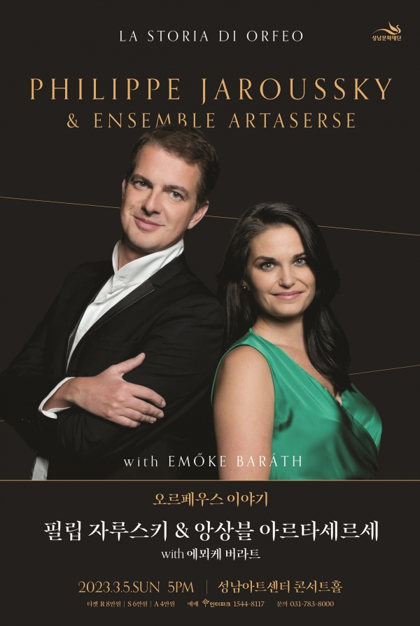 [광성일보] 성남문화재단이 카운터테너 필립 자루스키와 소프라노 에뫼케 버라트, 앙상블 아르타세르세와 함께하는 <오르페우스 이야기> 공연을 오는 3월 5일(일) 오후 5시 성남아트센터 콘서트홀에서 개최한다.카운터테너는 훈련을 통해 남성 최고 음역인 테너를 넘어 여성의 음역대에 해당하는 목소리를 낼 수 있는 남성 성악가를 의미한다. 물리적인 거세를 통해 인위적으로 고음 목소리를 유지하는 카스트라토와는 달리, 사춘기 이후 가성을 훈련해 변성된 음성과 가성을 모두 낼 수 있다.