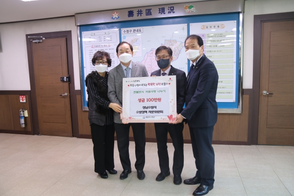 [광성일보] 성남소방서 소방정책자문위원회(회장 정인화)는 민족 최대의 명절 설날을 맞이해 소외된 불우이웃에 대한 온정의 손길을 전하고자 수정구청과 중원구청에 각각 성금 100만원씩 기탁했다고 19일 밝혔다.