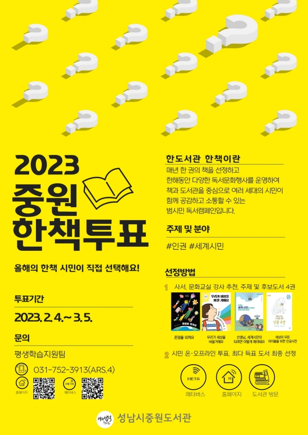 성남시중원도서관, ‘2023 올해의 한 책’ 선정 시민투표 실시