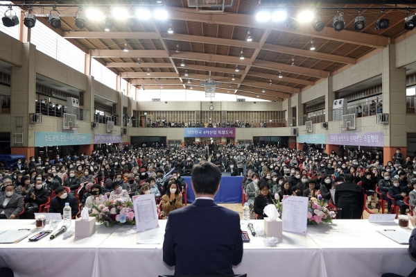 [광성일보] 신상진 성남시장은 2월 9일 분당중앙고등학교 체육관에서 새해 시민 인사회를 개최해 사흘 연속 소통 행보를 이어 나갔다.이날 인사회는 분당구 을 지역 주민 710여 명이 참석해 14건을 건의했다.그중 하나는 분당동 지역의 빌라 단지 주차 문제 해결을 위해 인근 공원 내 지하 주차장을 건립해달라는 요청 건이다.