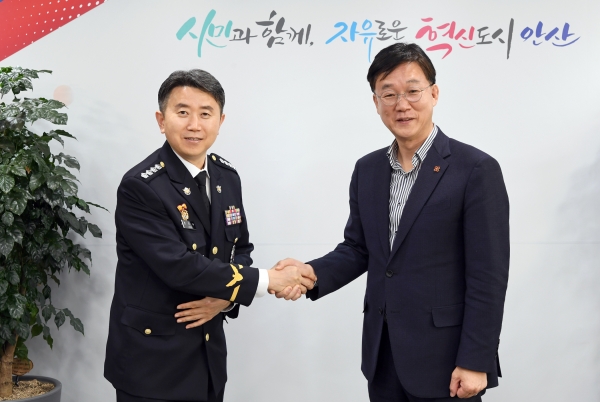 이민근 시장이 장진수 신임 평택해양경찰서장을 접견하고 친환경 안산-대부도 뱃길 운항 등 시의 주요 해양정책에 대한 협조를 요청했다고 15일 밝혔다.