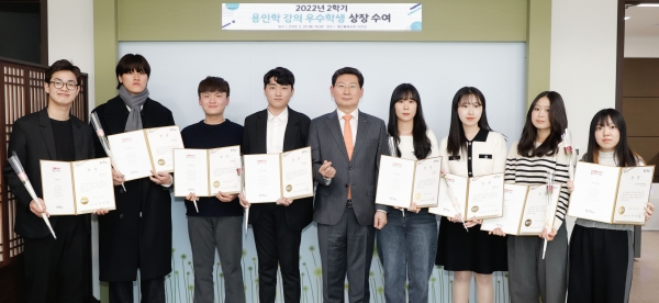 관내 대학 교양 과목으로 개설된 2022년 2학기 '용인학' 강좌를 수강한 우수 학생 9명에게 상장을 수여했다.