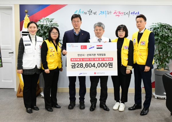 이번 성금은 지난 10일부터 7일간 시 소속 전 직원과 출자·출연 기관, 안산시청공무원노동조합 등에서 총 1천500여 명의 정성이 모여 만들어졌다.성금은 대한적십자사를 통해 튀르키예와 시리아의 이재민 구호와 지진 피해 복구를 위해 사용될 예정이다.