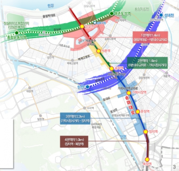 ‘송파대로’는 잠실대교 남단~성남시계로 이어지는 총길이 6.2km의 10차선 도로이다. 잠실역과 롯데월드타워, 석촌호수, 가락농수산시장, 문정법조단지, 동남권 물류센터 등 송파의 명소와 주요 시설을 잇는 관문역할을 수행하고 있다.구는 지난 1월 19일 송파대로 명품거리 조성 기본구상 용역 착수보고회를 개최하였다. ‘쾌적하고 품격과 활력이 넘치는 명품거리 송파대로’ 조성을 목표로, 권영걸 서울디자인재단 이사장을 위원장으로 하는 자문위원회와 함께 기본구상안에 대한 의견을 나눴다.추진 방향을 ▲쾌적한 보행녹지 거리 ▲활력 넘치는 일자리 ▲품격있는 디자인 거리 조성으로 정하고, 기존 공간 재배치와 가로환경 개선, 상업지역 확대 및 고밀개발 추진 등으로 도시가치를 높이기 위한 방안들을 논의했다.