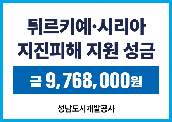 성남도시개발공사, 튀르키예·시리아 지진피해 지원 성금 기부