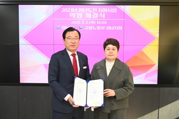 시는 특히 효율적인 청년취업 지원을 위해 2일 시청 시장실에서 이현재 시장과 김영미 고용노동부 성남지청장이 참석한 가운데 ‘2023년 청년도전 지원사업’ 약정 체결식을 갖고, 구직단념 청년 등의 취업에 함께 힘을 모으기로 했다.이에 따라 시는 고용노동부 성남지청과 함께 관내 청년 등 80명을 발굴해 밀착상담, 자신감 회복, 진로탐색, 취업역량강화 등의 프로그램을 제공할 계획이다.지원대상은 ▲최근 6개월 이상 취업 및 교육·직업훈련 참여 이력이 없는 청년(만18~34세) ▲자립준비청년 ▲청소년 쉼터 등 입·퇴소 청년 등이다.