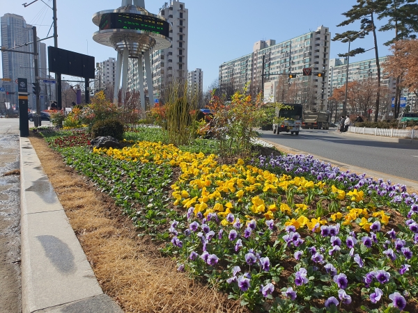[광성일보] 송파구(구청장 서강석)가 다가오는 봄을 맞이하여 주요 도로변 및 버스 정류장 일대를 ‘사계절 내내 아름다운 꽃이 피는 거리’로 만들어 나간다고 6일 밝혔다.구는 주요 도심지에 유동인구가 많은 곳 중심으로 계절 꽃이 가득한 가로환경을 조성한다. 일상에 지친 구민들에게 거리 곳곳 꽃의 정취를 느낄 수 있는 사계절 꽃길을 선물하기 위함이다.