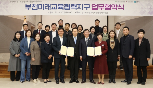 염 의장은 축사를 통해 “우리 아이들이 바른 인성과 뛰어난 역량을 갖춘 미래인재로 성장하기 위해서는 좋은 사회적 여건이 마련돼야 한다”라며 “부천시와 부천교육지원청이 활발히 소통하고 협력해 ‘자율, 균형, 미래’라는 핵심 가치 위에 알찬 교육프로그램을 운영하며 우리 아이들이 미래 사회를 이끄는 지역인재로 성장할 수 있도록 이끌어주길 바란다”라고 말했다.한편, 이날 경기도부천교육지원청과 부천시는 ‘미래교육협력지구’ 사업에 관한 행·재정적 지원 및 인적·물적 자원을 공유하는 내용을 골자로 한 업무협약을 체결했다.