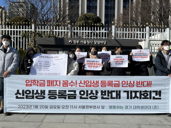 유매연 행동하는 경기대학생 연대 대표는 “코로나 19 이후 무너진 대학 공동체를 재건하고 경제위기로 인해 무너진 대학생 민생문제를 비롯한 여러 대학 및 사회문제에 함께 대응하고 목소리를 내기위해 행동하는 경기대학생 연대를 출범한다.” 라고 말했다. 행동하는 경기대학생 연대는 지난 1월 입학금 신입생 등록금 산입과 관련하여 “이는 입학금 폐지 꼼수이며 실질적 신입생 등록금 인상이다.” 라며 “입학금을 전면 폐지하고 입학금 실비용에 대한 산출근거를 제시하라”는 목소리를 냈다.