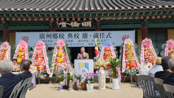 [광성일보] (재)경기도향교재단 광주향교는 지난 29일 광주향교 대성전에서 광주향교 전교 이·취임식을 개최했다.이날 행사는 유림 임원을 비롯해 이현재 하남시장, 방세환 광주시장, 최종윤 국회의원 등 내외빈 100여명이 참석한 가운데 ▲개회 ▲문묘향배 ▲내빈소개 ▲이임사 ▲취임사 ▲축사 ▲축하공연 ▲폐회 순으로 진행됐다.