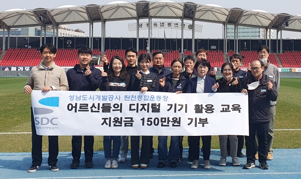[광성일보] 성남도시개발공사(사장 정건기, 이하 공사) 탄천종합운동장은 어르신들의 디지털 기기 활용 교육을 위해 중원노인종합복지관에 해피빈 콩 150만원을 기부했다고 29일 밝혔다.이번 후원은 일상생활 속에서 스마트폰, 키오스크 등 디지털 기기 사용에 어려움을 겪고 있는 지역 어르신들의 답답함을 해소하는데 도움을 주고자 마련됐다.기부금은 중원노인종합복지관의 어르신 맞춤형 디지털 교육인 ‘스마트e음’ 프로그램 운영비용으로 사용될 예정이다.