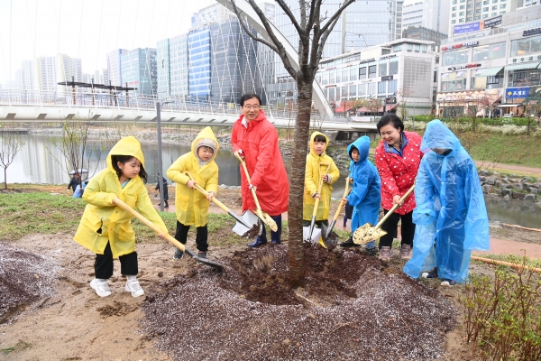 [광성일보] 하남시(시장 이현재)와 MG하남새마을금고(이사장 이점복)는 5일 식목일을 맞아 망월천에서 ‘내 나무 심기 행사’를 개최했다고 밝혔다.금번 식목행사는 미사호수공원에 하남시에서 식재한 왕벚나무 조성사업(시비 3억원)과 연계하기 위하여 같은 수종인 왕벚나무로 선정하여 망월천 상류부에 추진하였다.