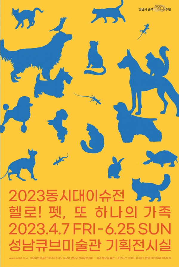 [광성일보] 성남문화재단(대표이사 서정림)이 2023 동시대이슈전 <헬로! 펫, 또 하나의 가족> 전시를 오는 4월 7일(금)부터 6월 25일(일)까지 성남큐브미술관 기획전시실에서 개최한다.성남큐브미술관의 대표 주제기획전인 ‘동시대이슈전’은 예술을 통해 문화·예술·사회·경제·정치 등 우리 사회의 이슈를 감각적으로 풀어내고 되짚어보는 전시로, ‘동시대미감전’과 격년으로 개최된다.2023 동시대이슈전 <헬로! 펫, 또 하나의 가족> 전시는 우리 삶에 중요한 부분으로 자리매김한 ‘반려동물’을 둘러싼 다양한 사회문화적 이슈를 예술적 관점에서 다룬다. 지난해 식물 애호 문화를 다룬 전시 <식물키우기>의 연장선에서 기획된 이번 전시는 인간의 삶을 풍요롭게 하는 반려동물의 존재적 가치를 환기하고, 인간과 동물의 공존에 대한 고민, 더 나아가 생명과 환경, 자연과의 상생에 대한 근원적 물음을 던진다. 전시에는 반려동물을 모티프로 국내 미술계에서 주목받고 있는 작가 11명이 참여한다.