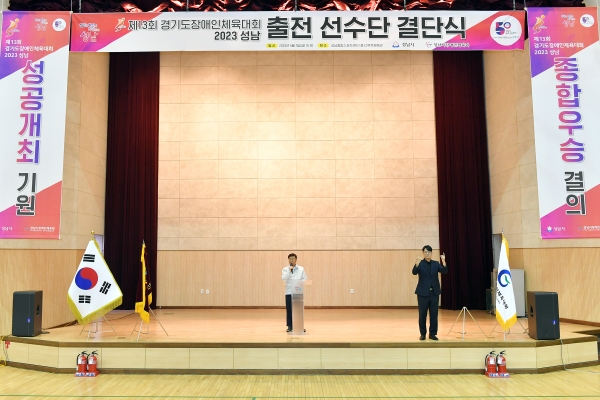 [광성일보] 성남시는 4월 7일 오후 중원구 성남동 성남스포츠센터 다목적체육관에서 ‘제13회 경기도장애인체육대회’에 출전하는 성남 선수단 결단식을 개최했다.이날 결단식에는 신상진 성남시장 등이 참석해 선수단 300명(임원 50명, 감독코치 36명, 보호자 33명, 선수 181명)을 격려했다.선전과 필승 결의를 다짐하는 선수대표 선서 등도 진행됐다.