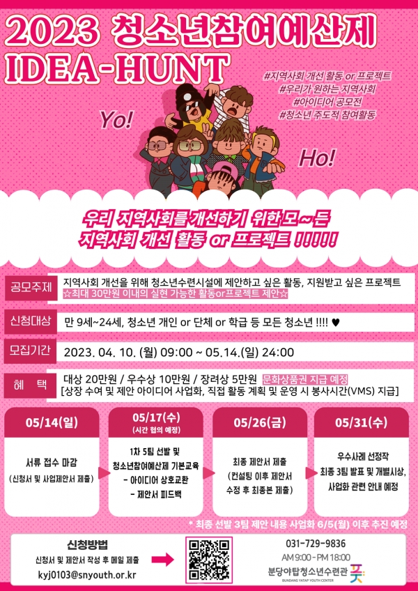 분당야탑청소년수련관, 제3회 청소년참여예산제 『IDEA-HUNT』 공모전 모집