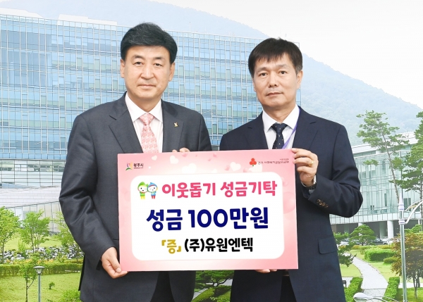 이영섭 ㈜유원엔텍 대표 또한는 작년에 이어 올해도 광주시민을 위해 기부금을 기탁하는 등 꾸준한 이웃사랑을 실천해오고 있다.방세환 시장은 “어려운 이웃에게 관심을 갖고 나눔을 실천해 주셔서 감사드린다”며 “기탁받은 성금은 꼭 필요한 분들께 지원하도록 하겠다.”고 말했다.