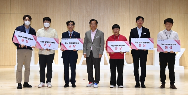 ‘하남의 미래’를 주제로 열린 심포지엄에서 하남시가 미래 자족도시로 나아가기 위해서는 천혜의 자연환경인 한강과 미사 아일랜드를 활용한 K-스타월드 개발로 한류문화 중심도시·수변문화도시로 도약하는 것이 필요하다는 비전을 제시하고 향후 개발전략을 시민과 함께 공감하는 시간을 가졌다.이어 2부에서는 ‘정책 제안대회’가 열렸다. 총 140건이 접수돼 하남시 역대정책 제안공모전 중 가장 많은 정책이 제안된 이번 대회는, 1차 심사를 거쳐 우수 제안으로 뽑힌 시민 3건과 공무원 3건의 제안 발표 및 평가를 통해 1등부터 3등까지 선정했다.시정홍보, 문화, 교육, 보건복지 등 다양한 분야로 선정된 이번 우수제안에서 시민제안 1등은 이성근님의 ‘하남체스공원조성사업 및 글로벌체스축제’ 가 차지했으며, 공무원 제안 1등은 덕풍3동 김민종 주무관의 ‘오늘은 공무원’으로 결정됐다.