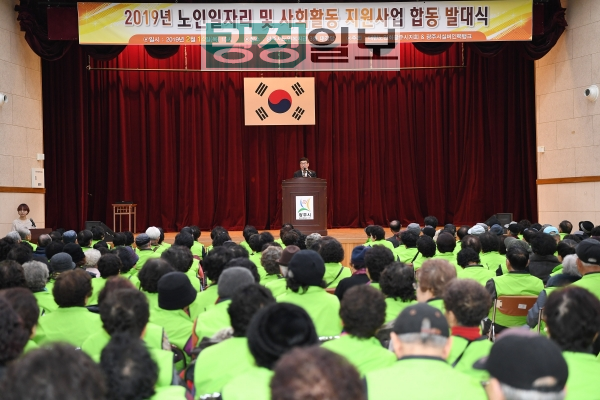 광주시 실버인력뱅크와 대한노인회 광주시지회는 14일 광주시노인복지관에서 ‘2019년 노인일자리 및 사회활동지원 사업 합동 발대식’을 개최했다.