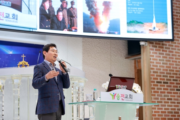 [광성일보] 이상일 용인특례시장이 26일 처인구 이동읍 송전교회(담임목사 권준호)에서 용인시기독교총연합회 임원진과 가족 등 80여명을 대상으로 '한반도 정세와 국가 안보' 특강을 진행했다.이날 강의에서 이 시장은 우크라이나를 침공한 러시아를 중심으로 중국과 북한이 유대를 강화하면서 국제 정세의 새로운 냉전 흐름이 전개되는 상황에 자유민주주의를 수호하려면 북한에 대응할 안보 능력을 키워야 한다고 역설했다.